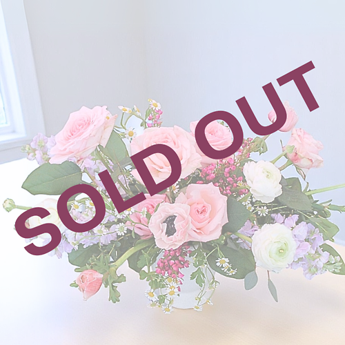 An enchanting mix of heavenly sented pink garden roses, lavender stock, white ranunculus and blush anemones in a moder